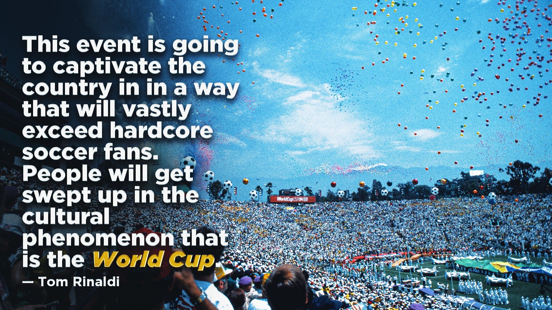 "When it comes to scale, the hype is real," Rinaldi said. "This event is going to captivate the country in a way that will vastly exceed hardcore soccer fans. People will get swept up in the cultural phenomenon that is the World Cup."