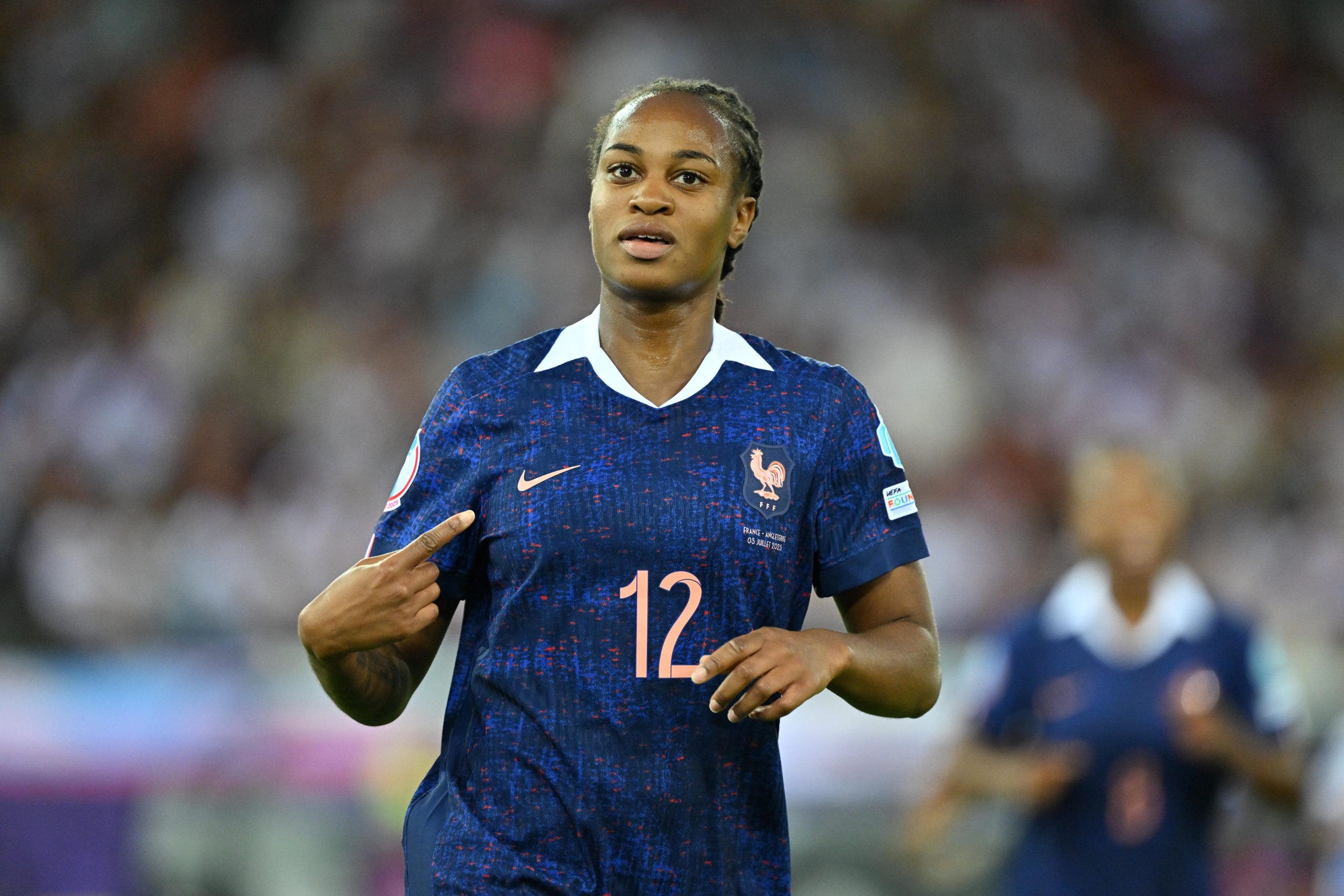 Hampton also had to make a couple of fine stops before France broke the deadlock in the 36th. Elise De Almeida won the ball in her own half before surging down the right and threading the ball through to Delphine Cascarino, who put in a low cross for Katoto to tap in at the back post.