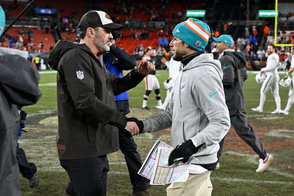 Kevin Stefanski's Browns and Mike McDaniel's Dolphins are very different teams with one key common characteristic: Their defenses play much better at home. (Photo by Nick Cammett/Diamond Images via Getty Images)