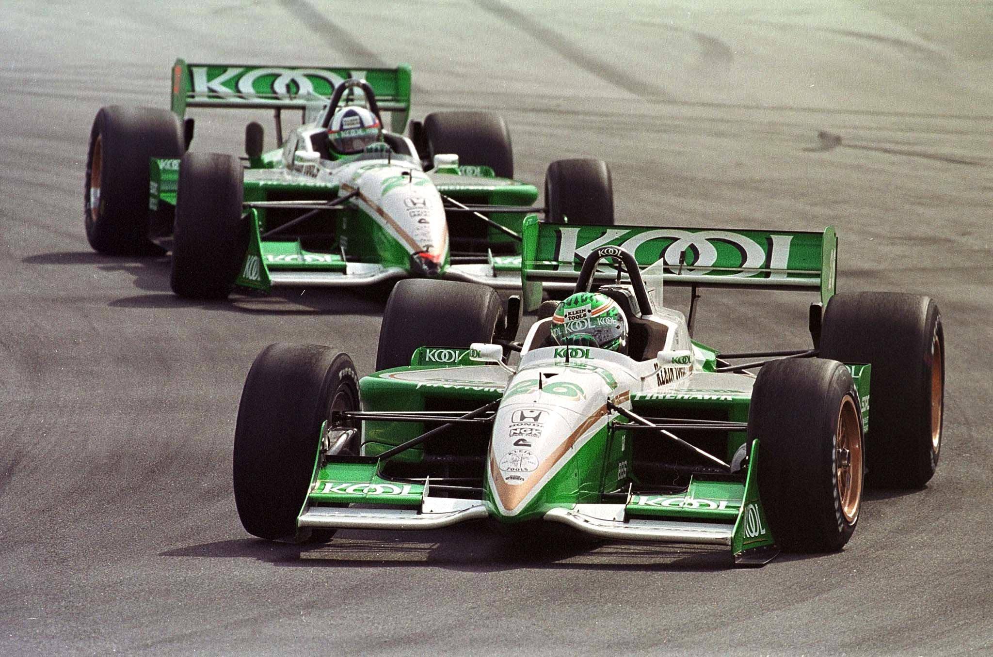Paul Tracy (front) and Dario Franchitti drive the Team KOOL Green car in 2000.