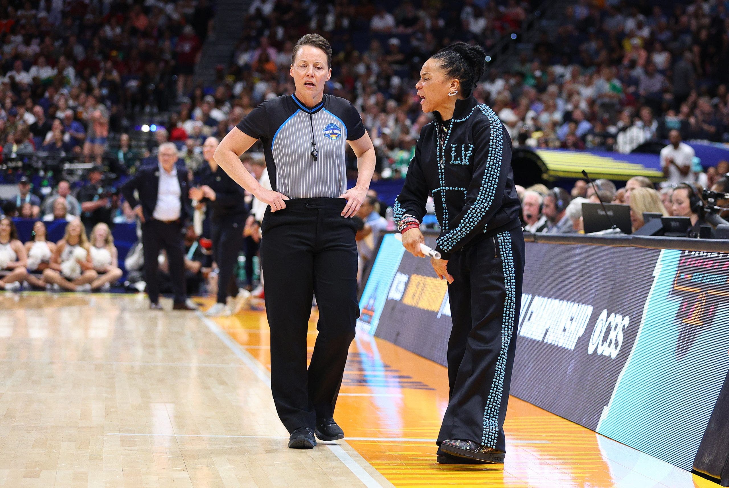 South Carolina head coach Dawn Staley will have the ability to challenge a call the next time she finds herself in this situation. (Photo by M. Anthony Nesmith/Icon Sportswire via Getty Images)