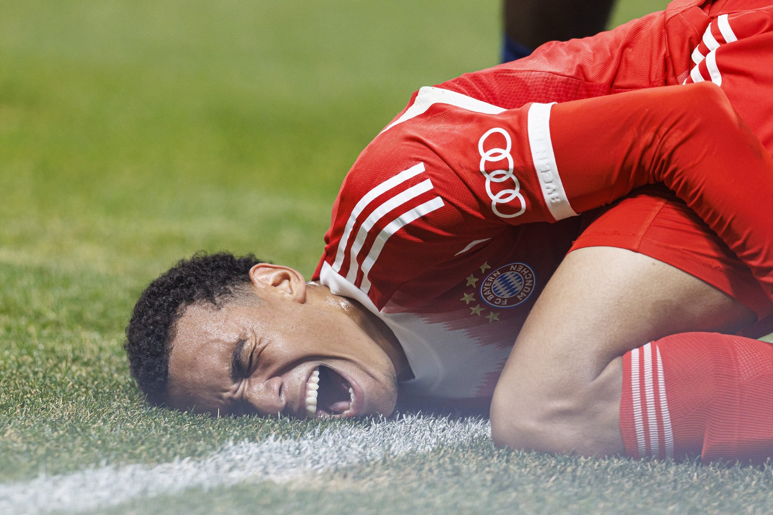 Jamal Musiala was carted off in the first half. (Photo by Martín Fonseca/Eurasia Sport Images/Getty Images)