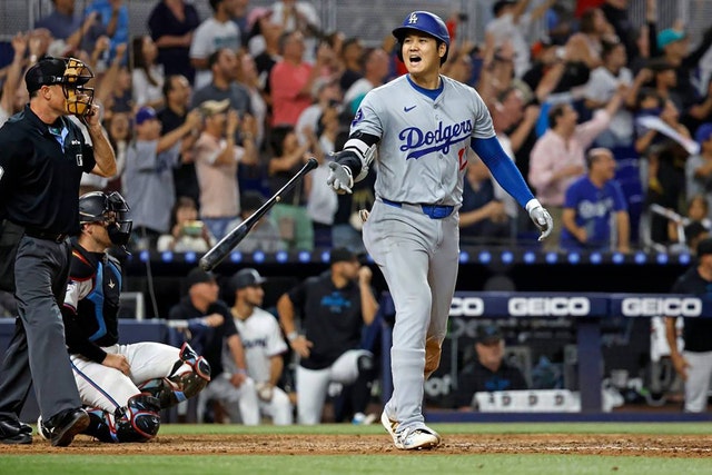 Shohei Othani eclipsed the first ever 50/50 mark in terms of homers and stolen bases last season. (Al Diaz/Miami Herald/Tribune News Service via Getty Images)