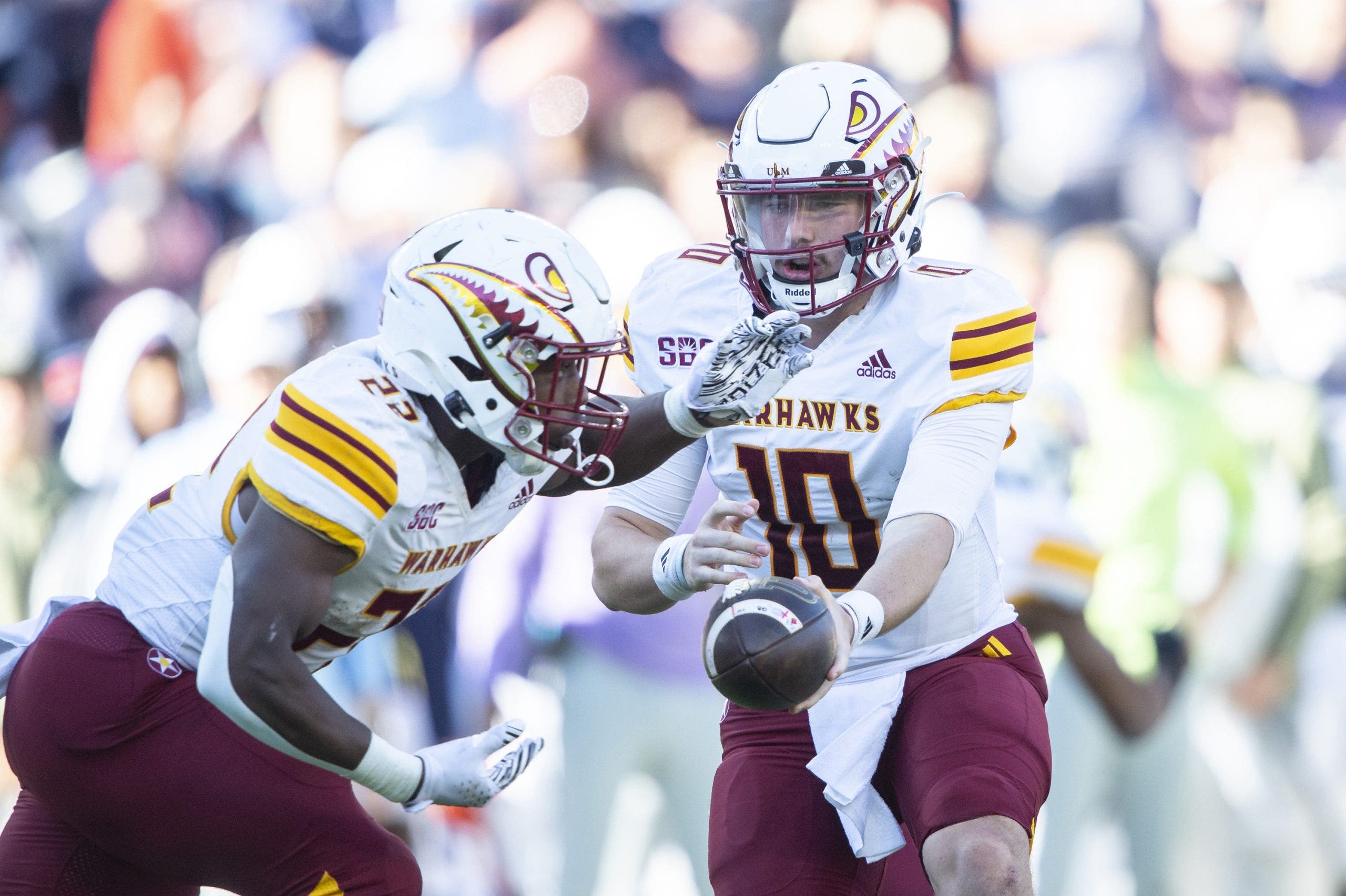 Barely 10 months have passed since Hardy enrolled at Louisiana-Monroe as a sparsely recruited, zero-star recruit in the 2024 cycle. Though Hardy had rushed for more than 2,200 yards and 27 touchdowns during his senior season at Lawrence County High School in Monticello, Mississippi, the Warhawks were the only FBS program to offer him a scholarship. He won the starting job in fall camp for a run-heavy offense that would finish 51st nationally in rushing and made an immediate impression by carrying 19 times for 103 yards and one touchdown in a season-opening victory against Jackson State. It marked the first of eight 100-yard games for Hardy amid a workhorse season in which he averaged 19.8 carries per game and 23 per game across the second half of the year. He exceeded 200 yards in narrow losses to Marshall (25 rushes, 206 yards, 1 TD) and Arkansas State (30 carries, 204 yards, 2 TDs), which showcased his big-play ability with scores of 80 yards against the former and 72 yards against the latter. When the season ended, Hardy was the only freshman to rank among the top 20 nationally in rushing.