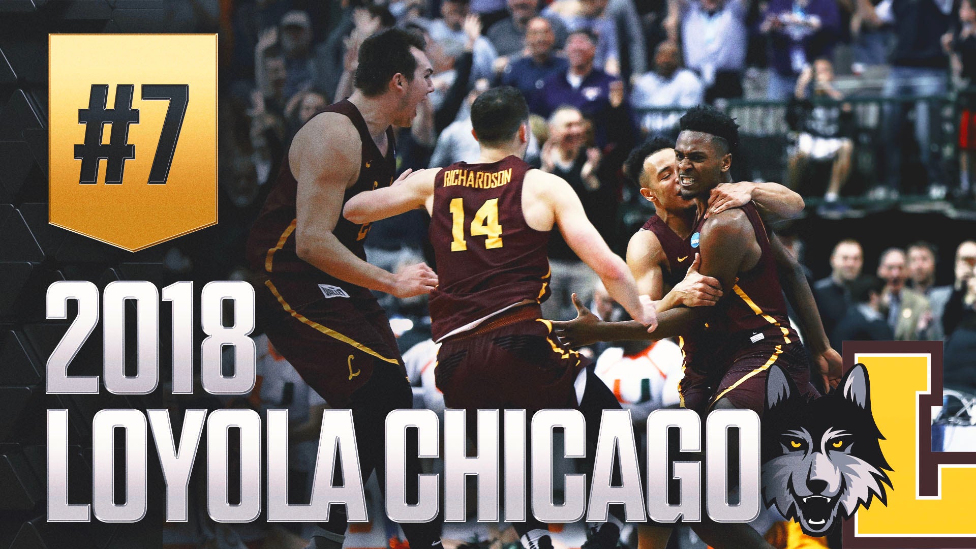 Otherwise known as the "Sister Jean" run, the No. 11 seed Ramblers captivated the sports world in the 2018 tournament. Following an upset victory over sixth-seeded Miami in the opening round, Loyola Chicago beat third-seeded Tennessee, seventh-seeded Nevada and then ninth-seeded Kansas State. The Ramblers' streak ended with a Final Four loss to third-seeded Michigan. Sister Jean, the chaplain for the Loyola Chicago men’s basketball team, was interviewed after the school's first-round win and became a lasting image of that year's tournament. As of March 2025, she's still going strong at 105 years old. In the regular season, Loyola Chicago had five players score in double figures per game.