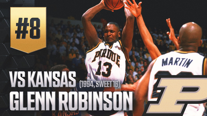 Robinson accounted for over half of Purdue's offense in an 83-78 win over Kansas. He put up a game-high 44 points, which included six 3-pointers, on 15-of-33 shooting from the field. With that performance, Robinson is tied for 14th in points scored by a player in a single game in men's tournament history. He also registered seven rebounds and three steals in the winning effort. Robinson led the Big Ten in points per game in each of his two seasons at Purdue, with whom he holds the record for points in a single season (1,030 points in 1993-94).