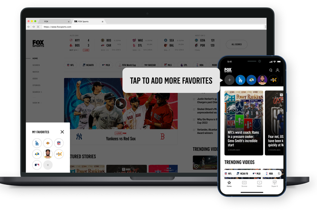 - Make it yours! Customize the content you see daily by adding your favorite teams, leagues and players in your FOX Sports account. We'll prioritize sending you the news for all your favorites every day.